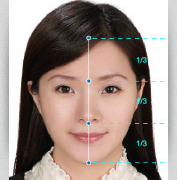 以鼻子的長度而言,眉間到鼻柱底的距離佔臉長的1/3。