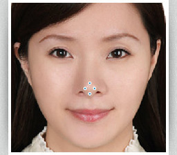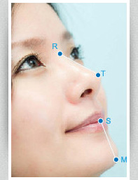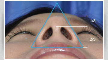 鼻頭應有清楚的四點:鼻尖定義點(Tip-Defining Points)、上鼻點(Supratip Break)、鼻中柱點(Columella Break)及下側鼻軟骨中腳(Middle Crus of Lower Lateral Cartilage)連線所形成的對等三角形。