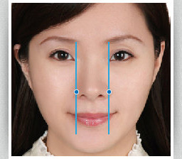 女生鼻樑高度應在鼻根點和鼻尖下方2mm處,男生鼻樑則應接近那一條線。