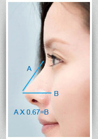 鼻子長度和高度的比率約為:鼻長度X0.67 = 鼻高度。