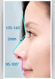 鼻額角:在男生約為 135度,女生約為140度。鼻唇角:約為95-105度。