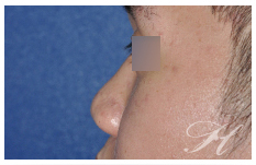 K先生因為車禍導致嚴重的鼻骨骨折及顏面骨折。經過了緊急的處理後。在受傷後一週內接受臉骨骨折的復位手術。在休養了三個月後。轉診到長庚美容醫學中心蕭彥彰主任的門診。因為鼻骨骨折所以需要進行鼻骨復位手術。此外凹陷的鼻樑及鼻頭,蕭主任採用三段式隆鼻重建他的鼻型。