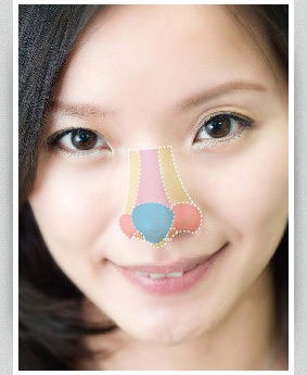鼻子可以細分成9個「次單位」:一個鼻樑(Dorsum)、兩個鼻側壁(Sidewall)、一個鼻尖(Tip)、兩個鼻翼(Ala)、兩個鼻軟三角(Soft Triangle)和一個鼻小柱(Columella)。事實上,在鼻子的上方並沒有明顯的線條去區分出這樣的次單位,而是藉由光線的照射呈現出。因為鼻部皮膚底下的軟骨、硬骨及軟組織相互支 撐所產生的明暗線條而成的次單位。
