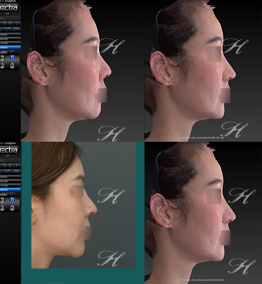 手術前的模擬手與下方手術後的結果相似度極高(鼻子及下巴的模擬)。因此手術前的模擬可以作為術前溝通的好工具