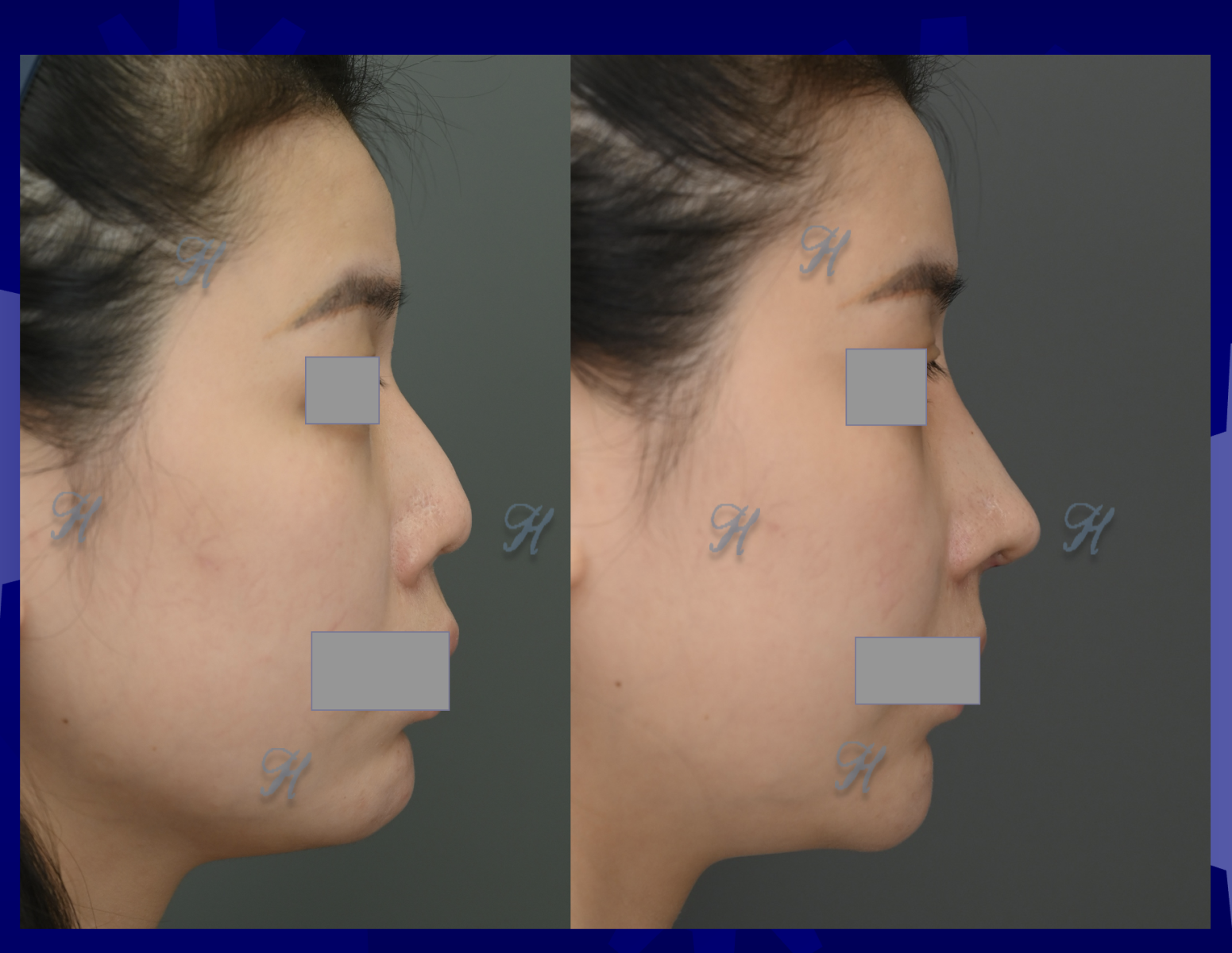 移除鼻內舊植入物及疤痕、自體肋骨隆鼻鼻頭調整、複合式耳軟骨皮膚移植鼻內組織缺損處。連軟三角處的凹陷,都確實仔細地調整了。