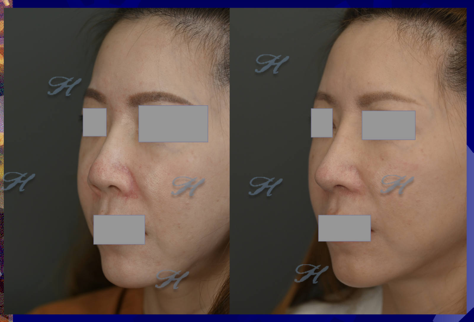 鼻整形二次重修,移除L型硅膠,自體肋骨鼻頭延長增高,鼻樑Goretex 加上異體真皮保護,縮鼻翼,貴族手術。改善短鼻、內縮鼻柱、寬大鼻翼、凹陷法令紋、鼻空外露、不順暢的鼻子線條。